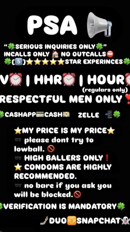 100QV100QV100QV 160HH160HH160HH NOTHING MORE, NOTHING LESS , YOU WILL BE IGNORED IF YOU DONT HAVE IT , DO NOT HIT ME UP. 100% REAL 🥰 - Verification REQUIRED NO SHOWS WILL BE BLOCKED!! NO LOWBALLERS 🤑 NO LAWS NO PIMPS NO GFE DO NOT ASK I WILL BLOCK YOU!! ABSOLUTELY!!! NO BARE SERVICES AT ALL!!! 😘 NO BARE SERVICES NO GAMES OR PIMPS!! No BULLSHIT WILL BE TOLERATED ✌🏼😒 Good vibes ! adult Vibes ! ❤😘💋🥰FETISHES AVAILABLE fetish friendly!! ($$$) !